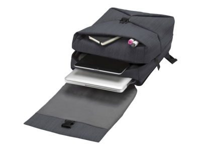 La poche matelassée assure une protection sur mesure à votre ordinateur portable. Cela est dû au rabat réglable qui vous permet de modifier la taille de la poche de façon à s'adapter parfaitement à votre appareil. La vaste poche principale contient une poche pour tablette pouvant accueillir des modèles jusqu'à 10 pouces. Deux poches plus petites permettent de ranger le chargeur et les accessoires. A l'avant, une poche à fermeture éclair contient une station de travail avec des espaces de rangement pour les stylos, le téléphone portable, etc. Le rabat du sac à dos est fermé à l'aide d'une boucle pour le maintenir bien en place. En cas de pluie, le sac à dos est équipé d'une protection rangée dans une poche invisible à l'arrière. Il suffit de la sortir et d'en envelopper la sacoche pour protéger vos affaires de l'humidité. Les sangles réglables sont matelassées et recouvertes d'une maille aérée pour plus de confort.