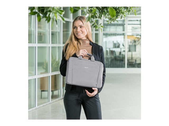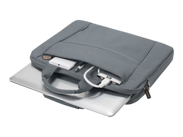 L'Eco Slim Case BASE est la solution de transport légère et mince pour votre ordinateur portable. Les appareils de 13 - 14.1" sont parfaitement protégés dans le compartiment rembourré pour ordinateur portable. Transportez votre sac confortablement grâce à la poignée rembourrée ou utilisez la bretelle réglable. Un compartiment à documents utile se trouve à l'arrière, où les documents peuvent être facilement rangés. Dans le compartiment avant pratique, vous trouverez suffisamment de place pour le smartphone ou d'autres accessoires mobiles tels que des câbles, des stylos ou des chargeurs qui doivent toujours être à portée de main. Cela fait de l'Eco Slim Case BASE le sac parfait pour tous ceux qui se déplacent souvent et qui souhaitent soutenir la réutilisation raisonnable des bouteilles en PET grâce à une solution de transport écologique.