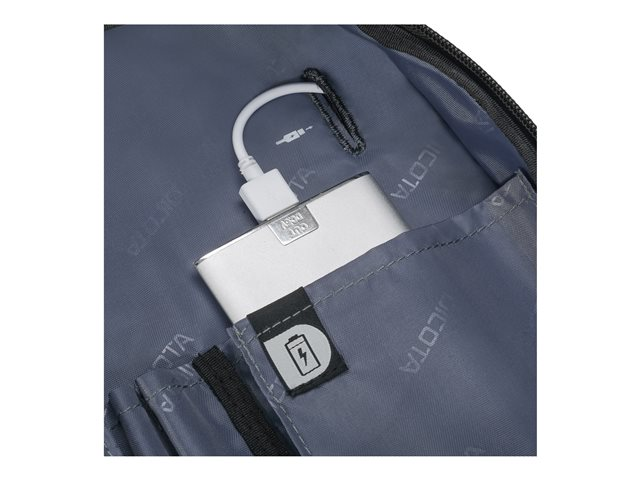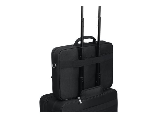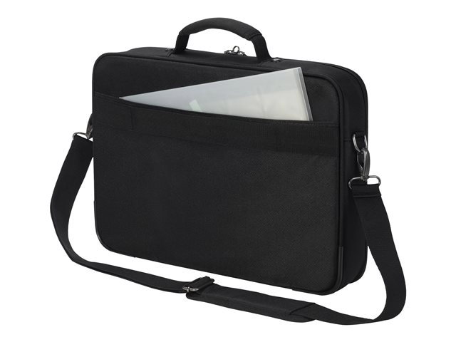 Le compartiment principal refermable à clapet protège votre ordinateur portable de 14 à 15,6" avec un rembourrage complet en mousse haute densité (HDF) et Nylex souple, à un cadre renforcé de métal et à une fixation fiable avec une sangle. Votre tablette jusqu'à 10,5" est également casée en toute sécurité dans sa poche spéciale rembourrée. La poche avant spacieuse permet de mettre de l'ordre avec son compartimentage fonctionnel pour smartphone, batterie externe, stylos et autres accessoires. Un compartiment supplémentaire zippé sur la partie inférieure avant du sac permet de ranger le chargeur et les câbles. La poignée de forme ergonomique et rivetée, une sangle avec renfort rembourré aux épaules réglable en longueur ainsi que la lanière de fixation trolley au dos permettent une utilisation flexible et garantissent un transport confortable.