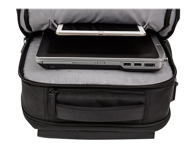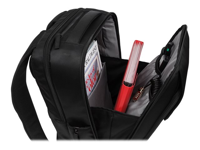 Lors de vos trajets quotidiens ou vos déplacements professionnels, le sac à dos SecureTrek 15,6" protège non seulement votre ordinateur portable contre les chocs, mais aussi contre le vol, grâce à son mécanisme de sécurité. Protégez le contenu de votre sac à dos en reliant les quatre fermetures au système de verrouillage SecureTrek, puis ajoutez un câble de sécurité Kensington. Ce dernier point fixe. Vous pouvez également utiliser un câble de sécurité agréé TSA lorsque vous prenez l'avion. Protégés par un tissus en Poly Twill, votre ordinateur portable et votre tablette trouveront leur place dans des compartiments rembourrés dont l'accès est sécurisé par une fermeture éclair anti-perforation. Ce sac offre de nombreux rangements pour toutes vos affaires, un dos rembourré pour plus de confort et un passant pour le fixer sur à un sac à roulettes.