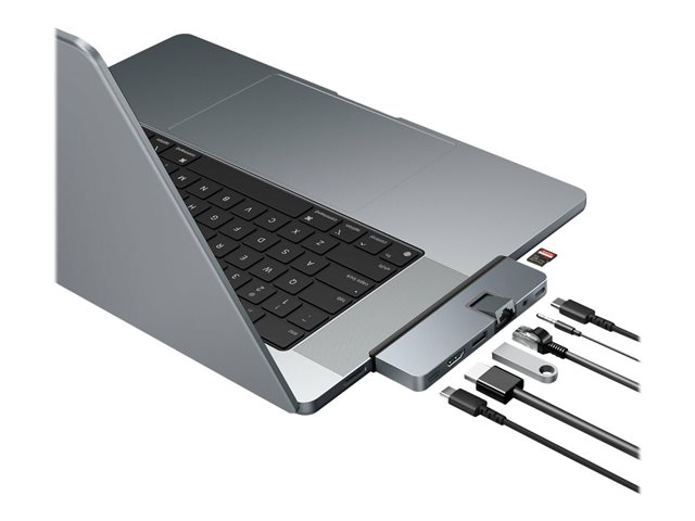 HyperDrive DUO PRO est un hub USB-C à 7 ports, de forme adaptée, conçu pour les nouveaux MacBook Pro 14" et 16", qui fonctionne également avec tous les MacBook 2016-2020. Ce hub form-fit fournit instantanément Gigabit Ethernet, USB-A 5Gbps, USB-C 5Gbps, MicroSD 104 MB/s, et une prise combo audio de 3,5 mm. Il offre également une prise en charge de l'affichage HDMI 4K 60Hz et un port compatible Thunderbolt 4 / USB4 (40Gbps, 100W PD, vidéo 6K 60Hz). En outre, l'adaptateur USB-C universel assure la compatibilité avec un Chromebook, un PC ou un iPad USB-C, et les connecteurs USB-C étendus permettent une compatibilité avec ou sans étui de protection.