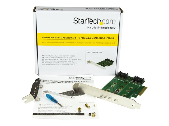 StarTech.com Adaptateur SSD M.2 NGFF à 3 ports - 1x M.2 PCIe (NVMe), 2x M.2 SATA III - PCIe 3.0 - Carte M.2 NGFF PCI Express - Adaptateur d'interface - M.2 - M.2 Card / SATA 6Gb/s - PCIe 3.0 PEXM2SAT32N1