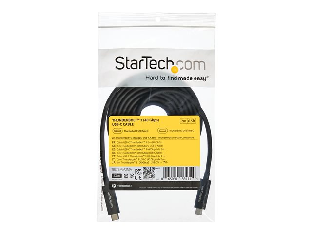 Ce câble Thunderbolt 3 (40 Gb/s) vous permet de vous connecter à n'importe quel port Thunderbolt 3 (USB-C ) pour transmettre des vidéos et des données à vos appareils Thunderbolt et USB. De plus, le câble vous permet également de charger vos appareils.