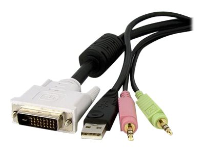 StarTech.com Câble de commutateur KVM DVI-D Dual Link USB 4 en 1 de 3m avec audio et microphone - Câble clavier/vidéo/souris/audio - USB, mini-phone stereo 3.5 mm, DVI-D (M) pour mini-phone stereo 3.5 mm, USB type B, DVI-D (M) - 3 m - noir - pour P/N: RKCOND17HD, SV231DVIUAHR, SV231QDVIUA, SV231TDVIUA, SV431DL2DU3A, SV431TDVIUA DVID4N1USB10