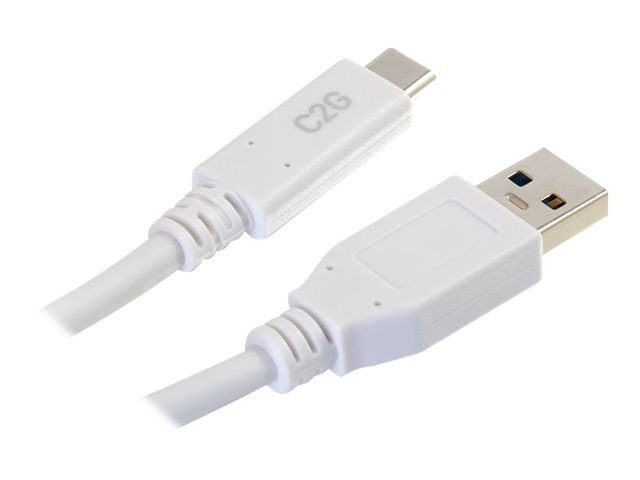 C2G 6ft USB C to USB A Cable - USB 3.2 - 5Gbps - White - M/M - Câble USB - USB type A (M) pour 24 pin USB-C (M) - USB 3.1 - 30 V - 3 A - 1.83 m - blanc
