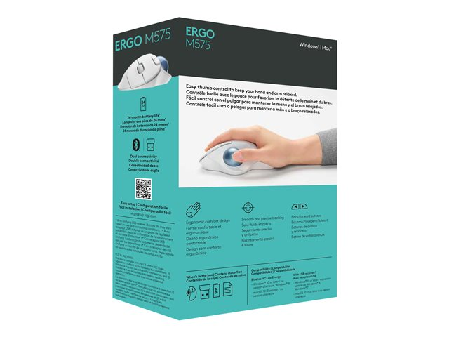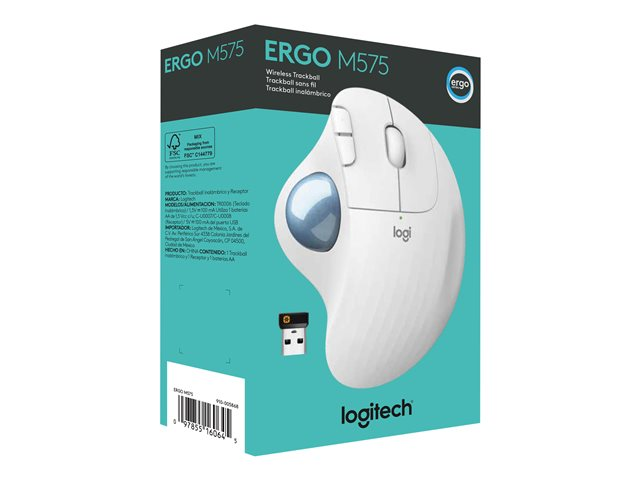 Logitech Ergo Series ERGO M575 - Boule de commande - optique - 5 boutons - sans fil - 2.4 GHz, Bluetooth 5.0 LE - récepteur sans fil USB - blanc cassé