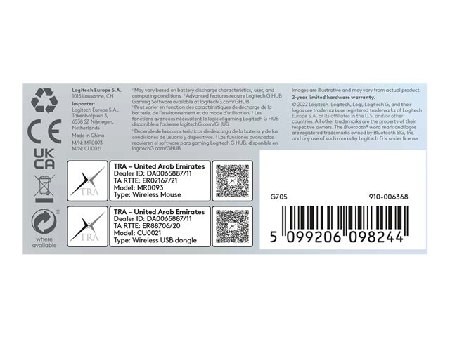 Logitech G G705 - Souris - petites mains - 6 boutons - sans fil - Bluetooth - récepteur USB Logitech LIGHTSPEED - blanc