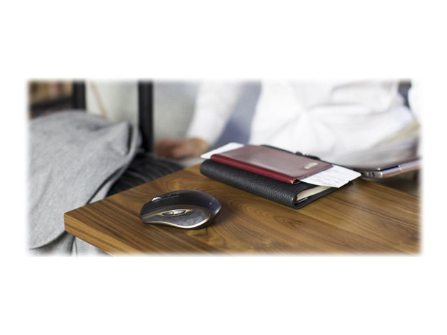 Grâce à la technologie de suivi Logitech Darkfield Laser Tracking, votre souris est compatible avec la plupart des surfaces, même en verre. Le monde devient votre tapis de souris. Vous pouvez laisser le récepteur Logitech Unifying branché sur votre ordinateur portable. Vous pouvez même ajouter d'autres dispositifs. Branchez-le. Oubliez-le. Ajoutez d'autres dispositifs. En savoir plus sur le récepteur Logitech Unifying. La forme compacte et ergonomique associée aux boutons actionnés par le pouce assurent confort et contrôle où que vous soyez.