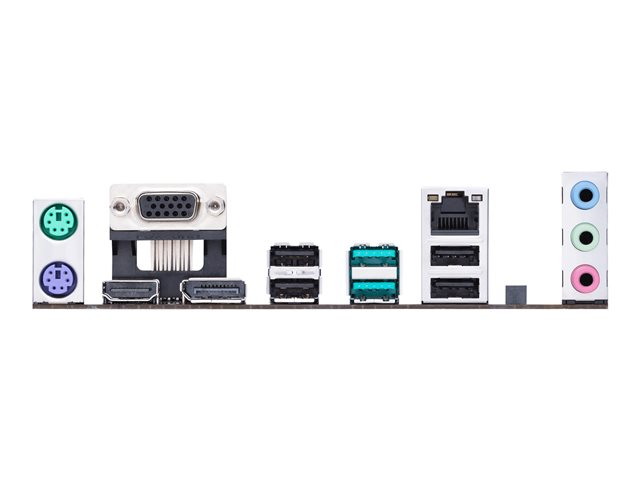 | Interfaces | 1 x HDMI 1 x DisplayPort 1 x VGA 2 x USB 3.2 Gen 2 1 x souris PS/2 4 x USB 2.0 1 x clavier PS/2 1 x entrée de ligne audio - mini-jack 1 x sortie de ligne audio - mini-jack 1 x microphone - mini-jack |