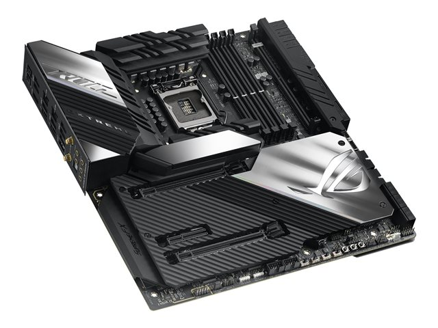 | Accessoires inclus | Autocollants pour ventilateurs ROG, câble d'extension de bande LED RGB (RGBW), 3 câbles de thermistance, support VGA ROG, carte de remerciement ROG, carte d'extension ROG DIMM.2 avec radiateur, tournevis, autocollant de plaque de logo ROG, Q-Connector, chaîne de clés ROG, antenne mobile ASUS Wi-Fi, lecteur USB, 1 à 3 câbles diviseurs de LED ARGB, 1 à 4 câbles répartiteurs de ventilateur, ROG Fan Controller, ROG CLAVIS DAC |