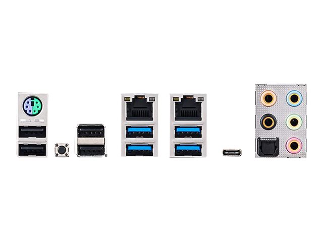 | Interfaces | 1 x LAN (Gigabit Ethernet) 4 x USB 3.2 Gen 1 4 x USB 2.0 1 x clavier / souris PS/2 1 x TOSLINK 1 x USB-C Gen2x2 1 x sortie de ligne audio - mini-jack 1 x microphone - mini-jack 1 x sortie de ligne audio (centre/caisson de basses) - mini-jack 1 x sortie de ligne audio (arrière) - mini-jack 1 x entrée de ligne audio - mini-jack 1 x souris PS/2 1 x LAN (2.5Gigabit Ethernet) |