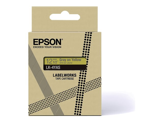 Epson LabelWorks LK-4YAS - Gris sur jaune - Rouleau (1,2 cm x 8 m) 1 cassette(s) boîte de suspension - cartouche de bande - pour LabelWorks LW-C410, LW-C610
