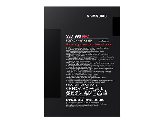 Samsung 990 PRO MZ-V9P2T0BW - SSD - chiffré - 2 To - interne - M.2 2280 - PCIe 4.0 x4 (NVMe) - AES 256 bits - TCG Opal Encryption 2.0