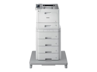 Cette unité papier de 4 tiroirs papier est dotée d'un socle à roulettes et des pieds ajustables.
