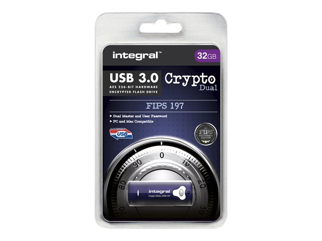 Integral Crypto Dual FIPS 197 - Clé USB - chiffré - 32 Go - USB 3.0