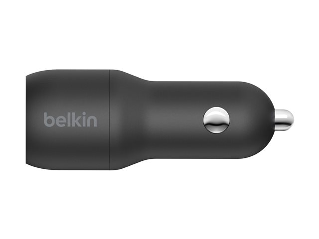 Belkin BOOST CHARGE Double chargeur - Adaptateur d'alimentation pour voiture - 24 Watt - 4.8 A - 2 connecteurs de sortie (USB) - sur le câble : USB-C - noir