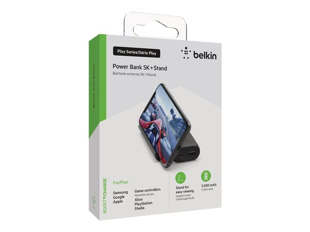 Belkin BOOST CHARGE - Play Series - banque d'alimentation - 5000 mAh - 12 Watt - 2 connecteurs de sortie (USB, 24 pin USB-C) - sur le câble : USB-C - noir