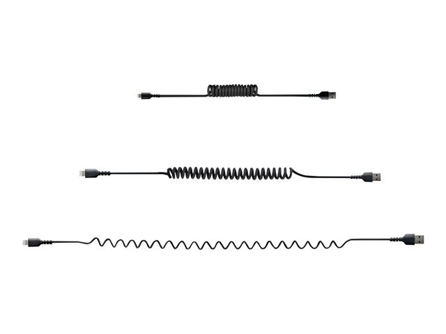 StarTech.com Câble USB vers Lightning de 50cm - Certifié Mfi - Adaptateur USB Lightning Noir, Gaine en TPE - Cordon Chargeur Iphone/Lightning Spiralé en Fibre Aramide Très Résistant (RUSB2ALT50CMBC) - Câble Lightning - USB mâle pour Lightning mâle - 50 cm - noir - bobiné