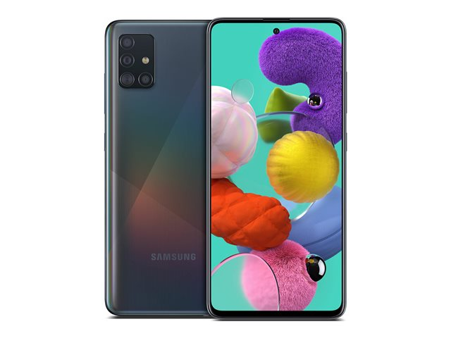 Samsung Galaxy A51 - 4G smartphone - double SIM - RAM 4 Go / Mémoire interne 128 Go - microSD slot - écran OEL - 6.5" - 2400 x 1080 pixels - 4x caméras arrière 48 MP, 12 MP, 5 MP, 5 MP - front camera 32 MP - noir écrasement de prisme SM-A515FZKVEUB