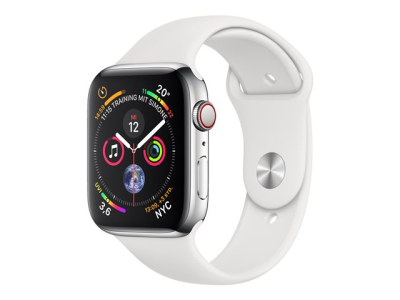 Apple Watch Series 4 (GPS + Cellular) - 44 mm - acier inoxydable - montre intelligente avec bande sport - fluoroélastomère - blanc - taille de bande 140-210 mm - 16 Go - Wi-Fi, Bluetooth - 4G - 47.9 g