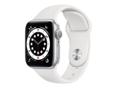 Apple Watch Series 6 (GPS) - 40 mm - aluminium argenté - montre intelligente avec bande sport - fluoroélastomère - blanc - taille du bracelet : S/M/L - 32 Go - Wi-Fi, Bluetooth - 30.5 g
