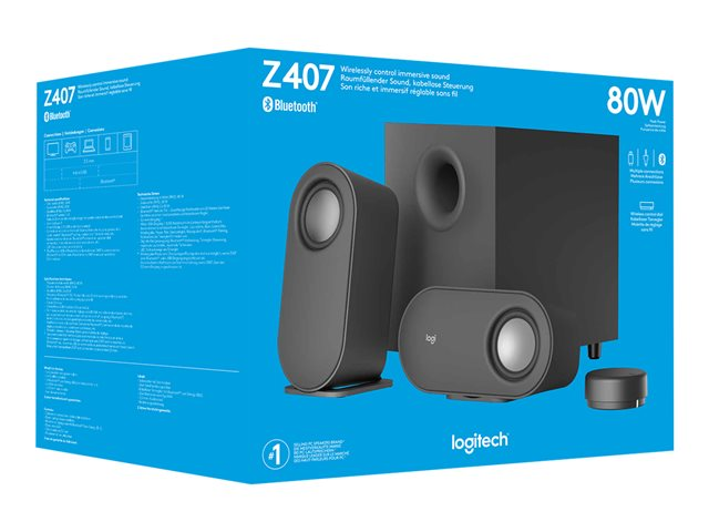 Logitech Z407 - Système de haut-parleur - pour PC - Canal 2.1 - sans fil - Bluetooth - USB - 40 Watt (Totale) - gris graphite