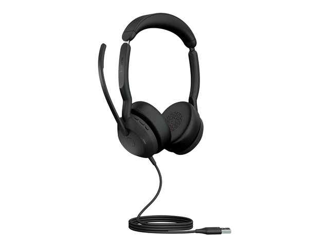 Jabra Evolve2 50 UC Stereo - Micro-casque - sur-oreille - Bluetooth - filaire - Suppresseur de bruit actif - USB-A - noir - certifié Zoom, Cisco Webex Certified, Optimisé pour la CU, Optimisé pour Google Meet, Optimisé pour Microsoft Teams, Certifié Alcatel-Lucent, Certifié Avaya, Certifié Unify, Certifié Amazon Chime 25089-989-999