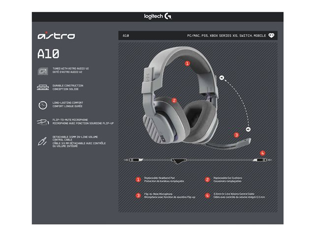 ASTRO Gaming A10 Gen 2 - Micro-casque - circum-aural - filaire - jack 3,5mm - gris 939-002071