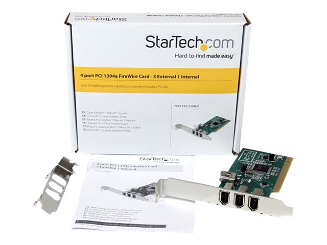 StarTech.com Carte Adaptateur PCI vers 4 Ports FireWire400 6 Broches- 1x Firewire 400 Interne - 3x FireWire 400 Externe - Adaptateur FireWire - PCI - Firewire - 3 ports PCI1394MP