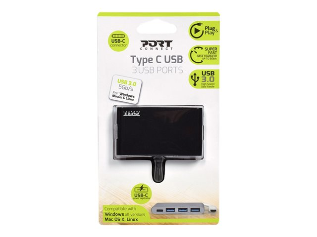 PORT Connect - Concentrateur (hub) - 3 x SuperSpeed USB 3.0 + 1 x USB-C - de bureau 900122