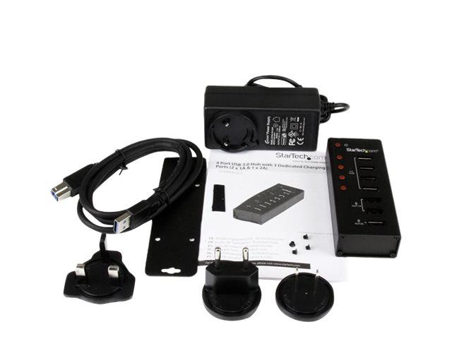 StarTech.com Hub USB 3.0 Alimenté de 4 ports avec Station de Recharge de 3 ports USB (2 x 1A, 1 x 2A) - Boîtier en Métal à Fixation Murale - Concentrateur (hub) - 4 x SuperSpeed USB 3.0 - de bureau - pour P/N: PEXUSB3S3GE, SVA12M5NA, USB312SAT3CB, USB315CB2M, USBLT1MWS, USBLTM1MBK, USBLTM1MWH