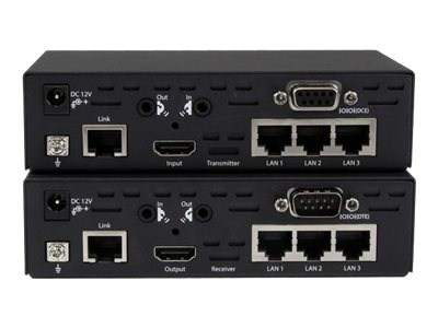 Avec ce kit d'extendeur unique, bénéficiez de la technologie HDBaseT avec HDMI, IR, RS232, Ethernet et alimentation pour une solution de bout en bout complète. Offrant une plus grande polyvalence que les extendeurs ou les câbles HDMI traditionnels utilisés seuls, le HDBaseT constitue une solution de choix pour tous les intégrateurs et concepteurs de système. L'extension infrarouge vous permet d'utiliser votre écran et un périphérique source par infrarouge, comme un lecteur Blu-ray ou un boîtier décodeur de téléviseur, à l'une ou l'autre extrémité de l'extension. Grâce à la commande RS232, vous pourrez brancher un périphérique série E/S à votre écran, ce qui est parfait pour ajouter une interface tactile série à votre écran distant pour vos présentations d'affichage numérique interactif. Le hub Ethernet à 6 ports intégré vous permet de brancher cinq périphériques IP à votre réseau (trois à distance, deux locaux).