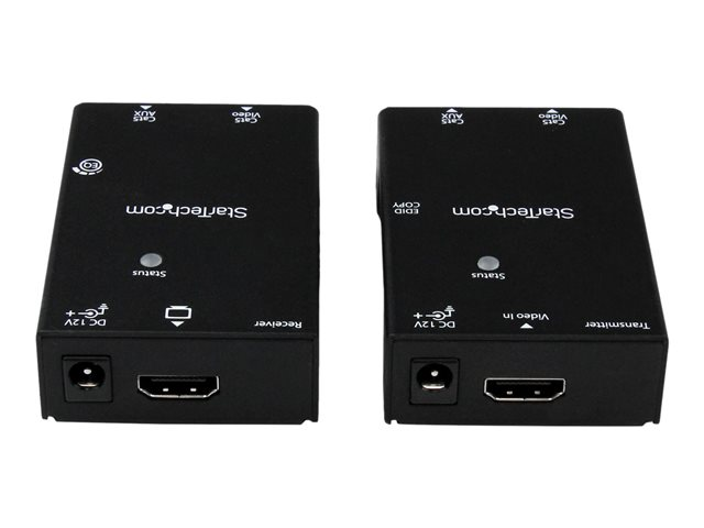 Le kit d'extendeur vidéo HDMI sur câble Cat5e/Cat6 ST121SHD50 vous permet d'étendre les signaux vidéo et audio HDMI jusqu'à 50 m avec deux câbles Cat5e ou Cat6. Pour une polyvalence accrue, le kit comprend Power over Cable et ne nécessite qu'un seul adaptateur d'alimentation que vous pouvez connecter au transmetteur ou au récepteur.