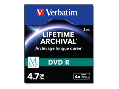 Verbatim M-Disc - 3 x DVD-R - 4.7 Go 4x - surface imprimable par jet d'encre - boîtier CD étroit